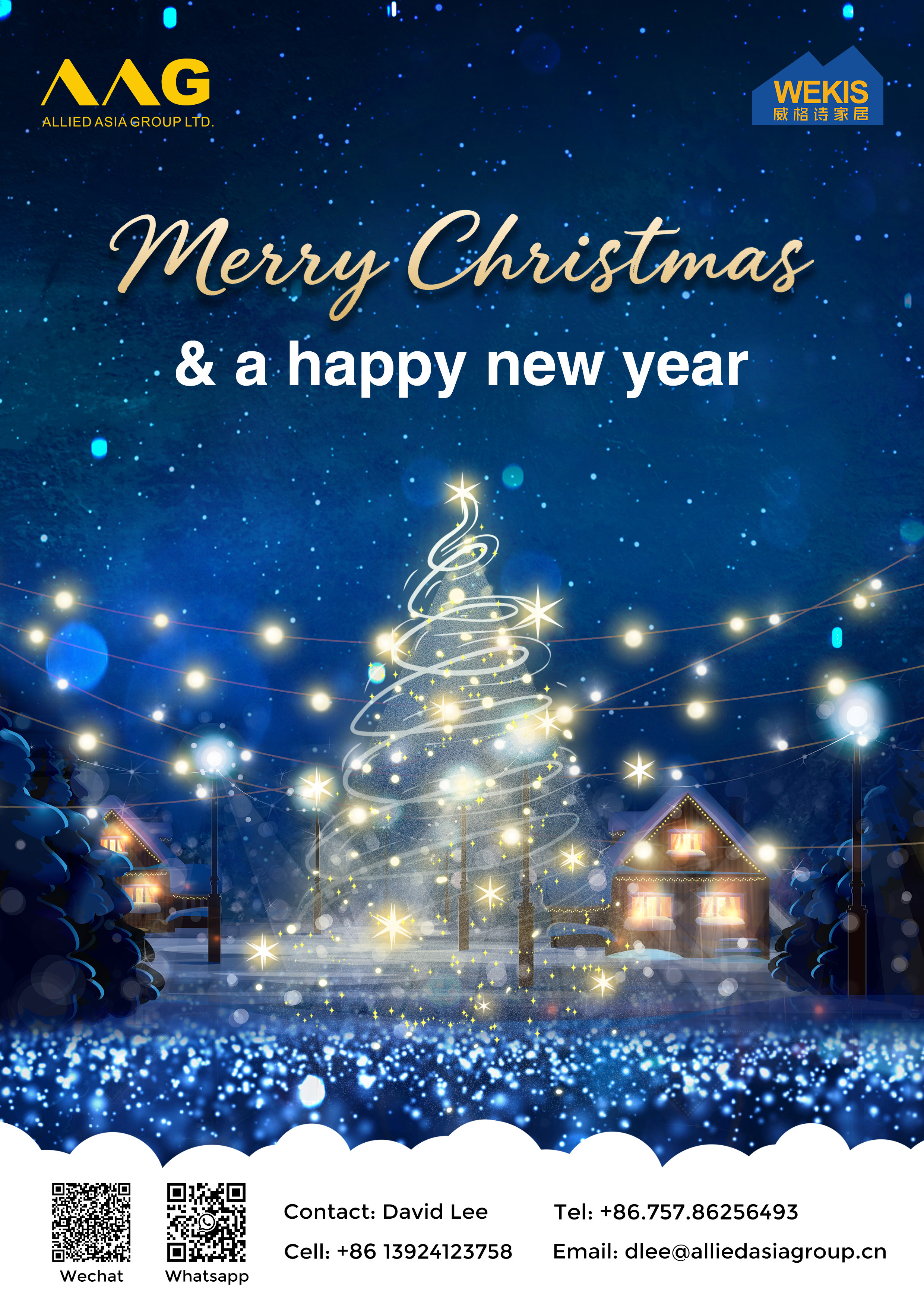 Desde herrajes para puertas corredizas hasta patas de mesa ajustables, los productos de Wekishome se adaptan a cada necesidad. Puede explorar la gama completa de accesorios para mejorar su hogar en vacaciones a través de nuestra página web oficial www.wekishome.com o contactar a David Lee (teléfono: +86 13924123758 / +86 757 86256493; correo electrónico: dlee@alliedasiagroup.cn) para obtener más información. Escanear los códigos QR de WeChat/WhatsApp del póster le permite comunicarse directamente con sus necesidades.